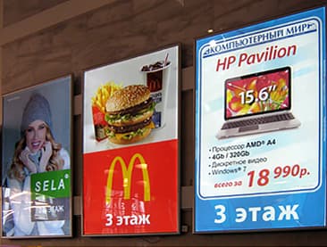 Световой короб с клик профилем – это конструкция, часто используемая московскими бизнесменами в коммерческих и рекламных целях. Он отличается небольшой толщиной, устанавливается внутри торгово-развлекательных комплексов, на площадях и улицах нашего мегаполиса.