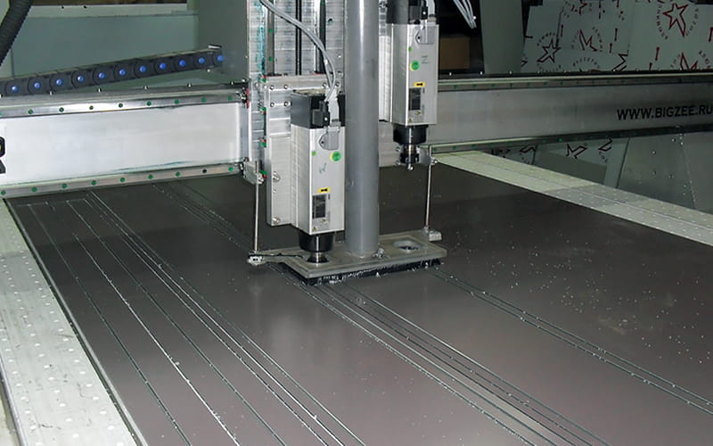 Фрезерные работы с композитными плитами следует доверять опытным профессионалам. Раскрой композита с высокой точностью производится на станках с ЧПУ в автоматическом режиме. Устранение человеческого фактора способствует снижению риска порчи заготовок в процессе резки листов исходного сырья.